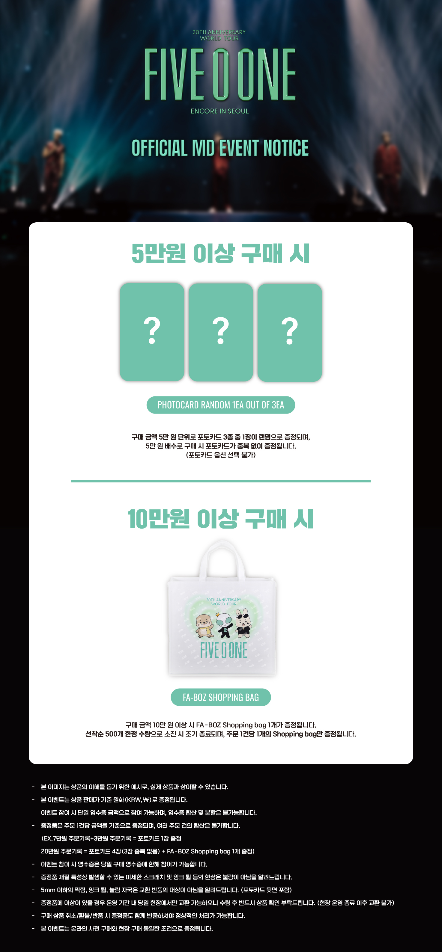 [🛒] 20th Anniversary World Tour 'FIVE O ONE’ ENCORE in SEOUL MD LIST